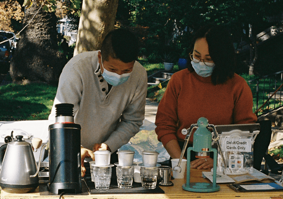 In 2019, we met at a friend’s hangout in Sacramento, California and had a lively conversation about our recent experiences. Nghia just returned from his one-year stay in Vietnam and was reminiscing about his favorite aspect of life there: frequenting the local cafes. He also joined a barista class where he learned to brew and stayed overnight at a coffee farm. Meanwhile, Tran moved home to Sacramento and was seeking a community to learn more about Vietnam. With this conversation came a mutual realization that coffee could be the ideal vehicle to bridge our experiences, share our culture, and connect with our community. During the pandemic, we continued our conversation online, bought coffee gear to brew at home, and started to materialize our grand idea.
